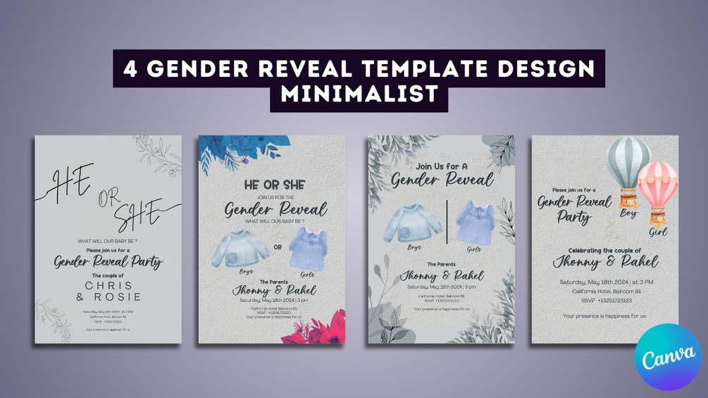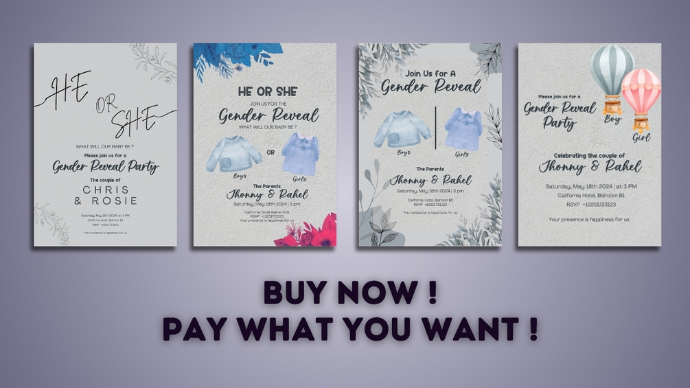 - 4 Design Gender reveal for Ready to print (A5 Dimension)